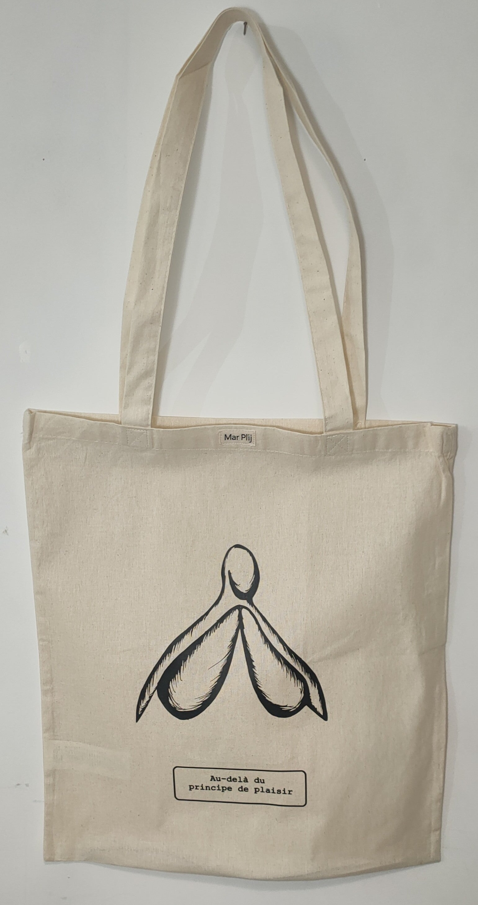 Les totes bags sont en coton, couleur naturel, aux dimensions de 38x42 cm, et au prix de 25€