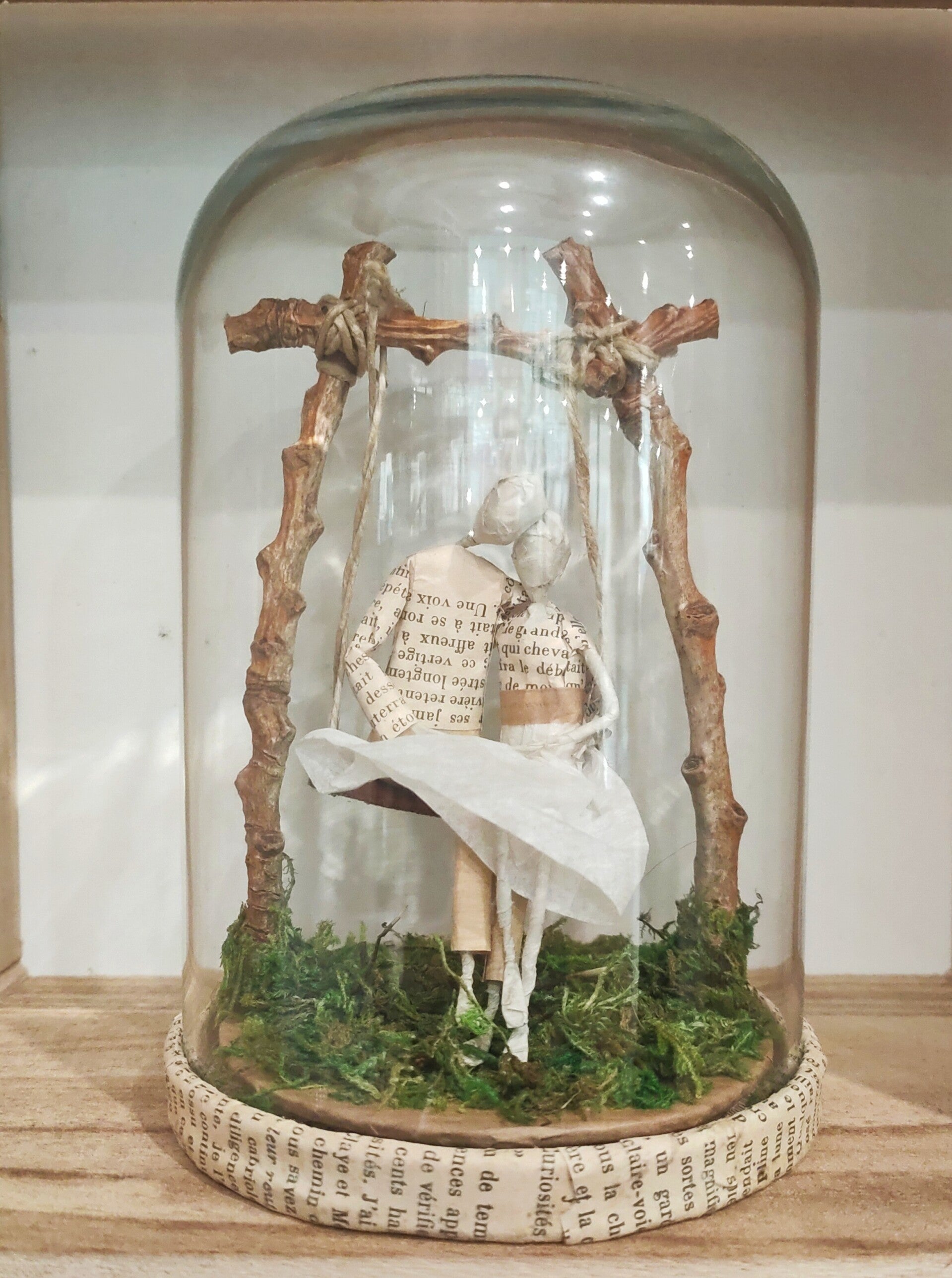 Personnages en papier sous cloche - disponible unique en boutique
